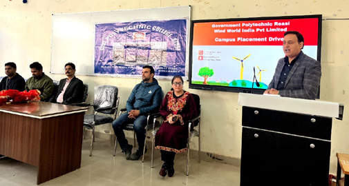 Government Polytechnic College Reasi today organised first time a placement drive to provide employment opportunities to the pass-out Polytechnic students. The maiden placement drive was conducted by Wind World (India) Limited Mumbai for the diploma students of Electrical, Mechanical, and Instrumentation and Control and Electronics & Comm. Engineering for the recruitment at their plant in Gujarat, Rajasthan and Maharashtra