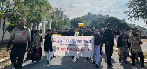 Red Ribbon Club of Government Polytechnic College Reasi in collaboration with J&K State AIDS Control society organized various activities in the institution to commemorate the Worlds AIDS Day. The activities were conducted under the guidance of Principal Er Arun Bangotra, Government Polytechnic Reasi. The programme was designed to educate students and the local community about HIV/AIDS prevention, early detectio n, and the importance of eliminating stigma.